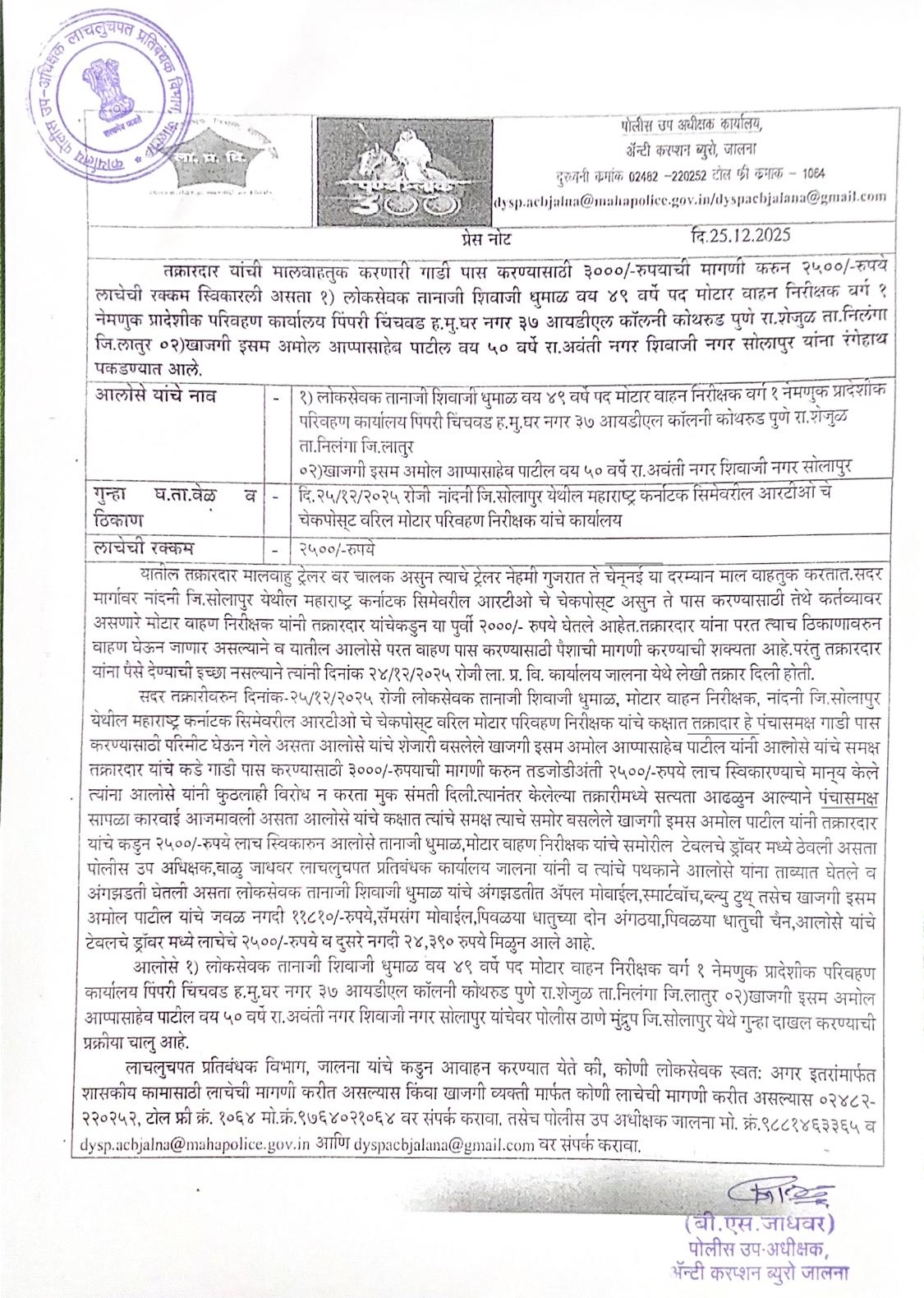 Press Release - 17.12.2025 JALNA ACB PRESS NOTE Uploaded By Solapur from Pune
