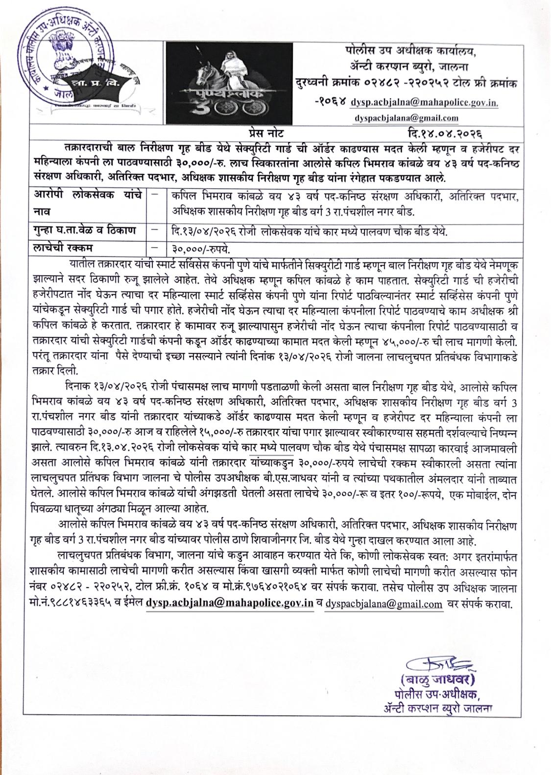 Press Release - JALNA ACB TRAP CASE PRESS NOTE DATE 13.04.2026 Uploaded By Jalana from Chhatrapati Sambhaji Nagar