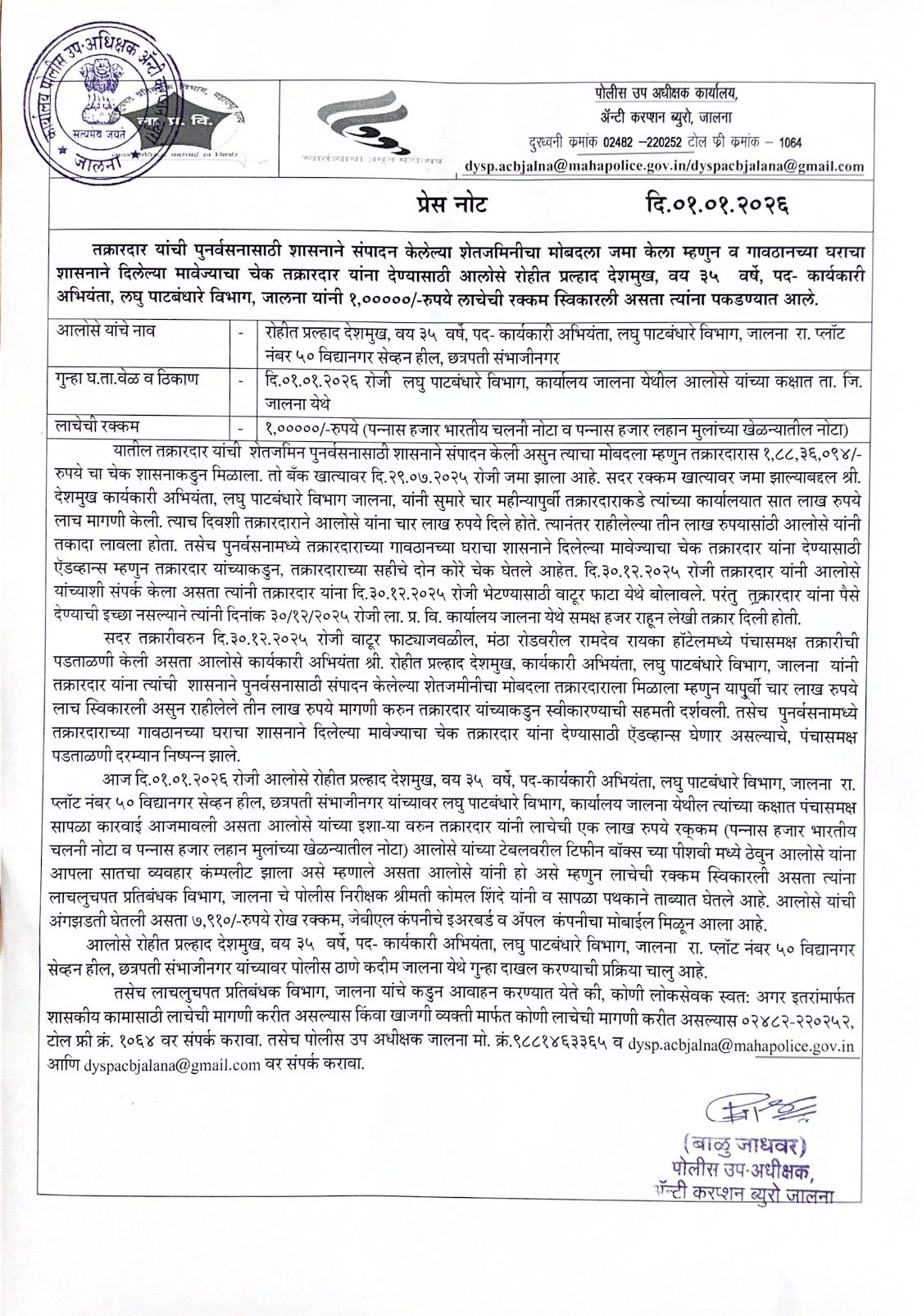 Press Release - 01.01.2026 JALNA ACB PRESS NOTE Uploaded By Jalana from Chhatrapati Sambhaji Nagar