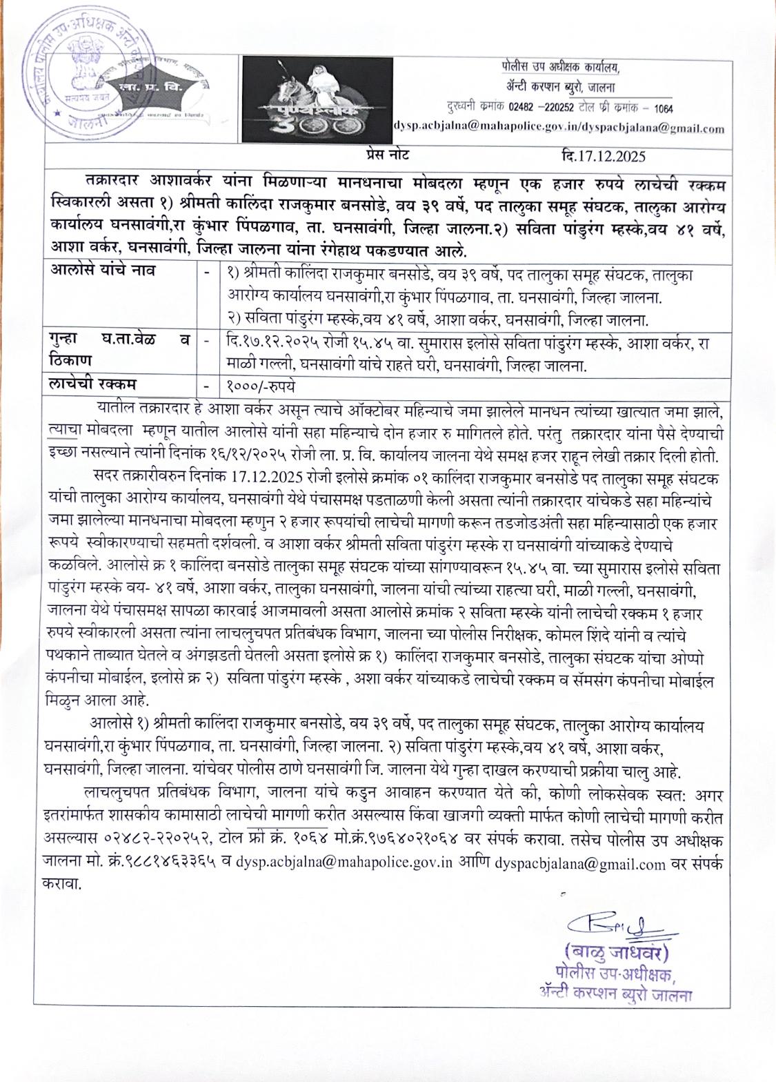 Press Release - 17.12.2025 JALNA ACB PRESS NOTE Uploaded By Solapur from Pune